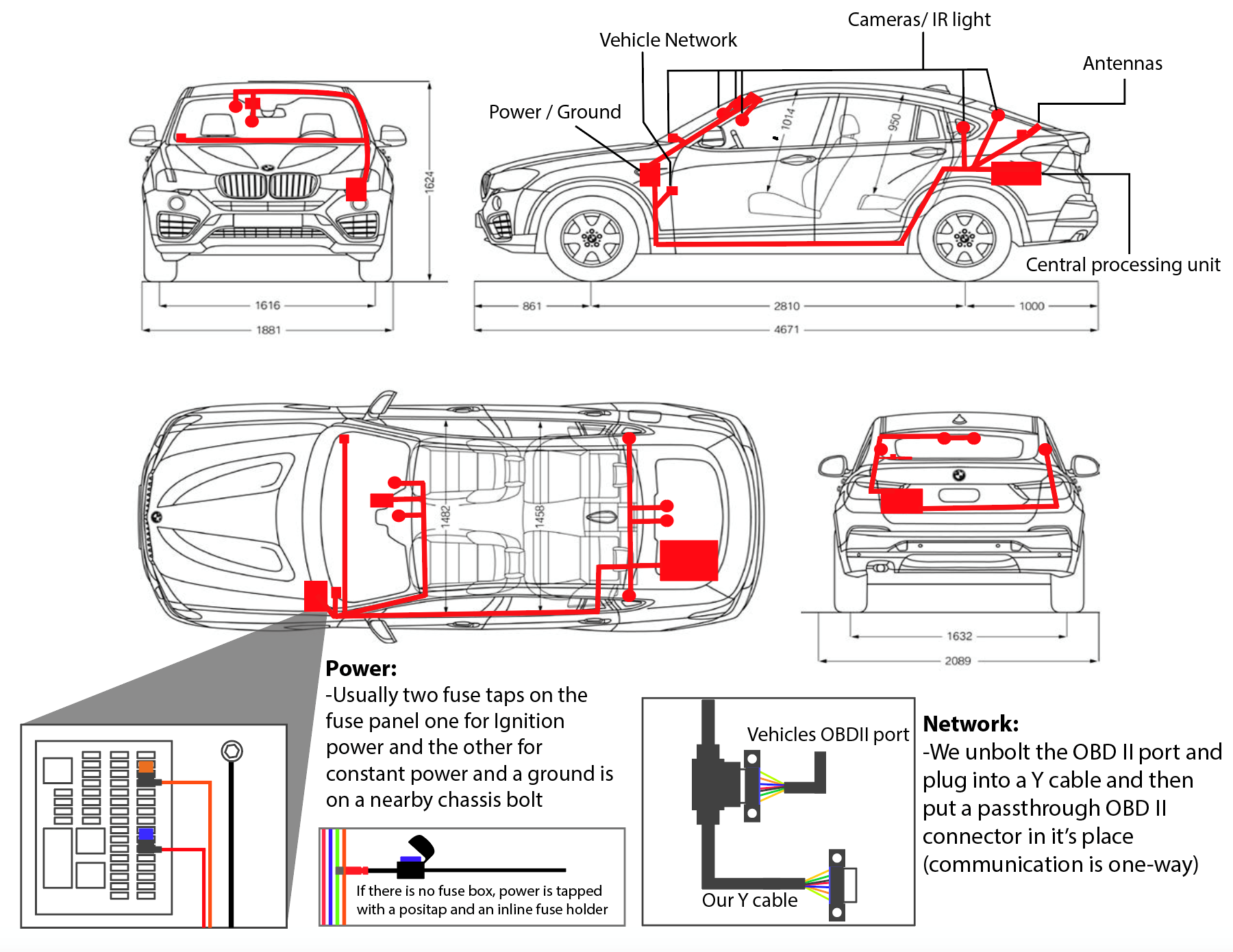 There are many components but only four connections between our system and the car.